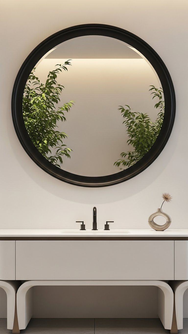 A large mirror doesn’t just serve a practical purpose—it visually doubles your space by reflecting light and creating depth. This is especially powerful in small or windowless bathrooms.