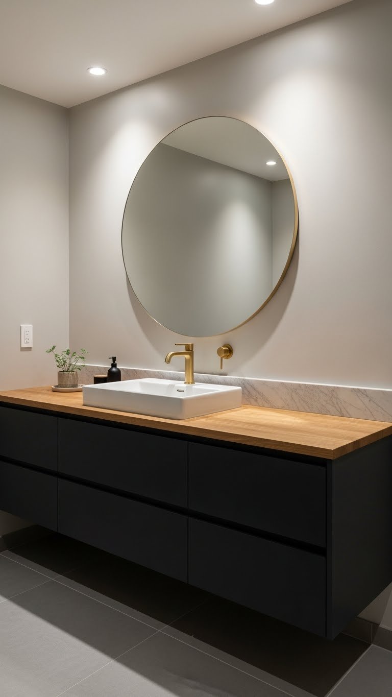 Tiny hardware changes create disproportionate impact. Swapping cabinet knobs and pulls from basic chrome to brushed brass, matte black, or gold instantly elevates your vanity and ties together your aesthetic.