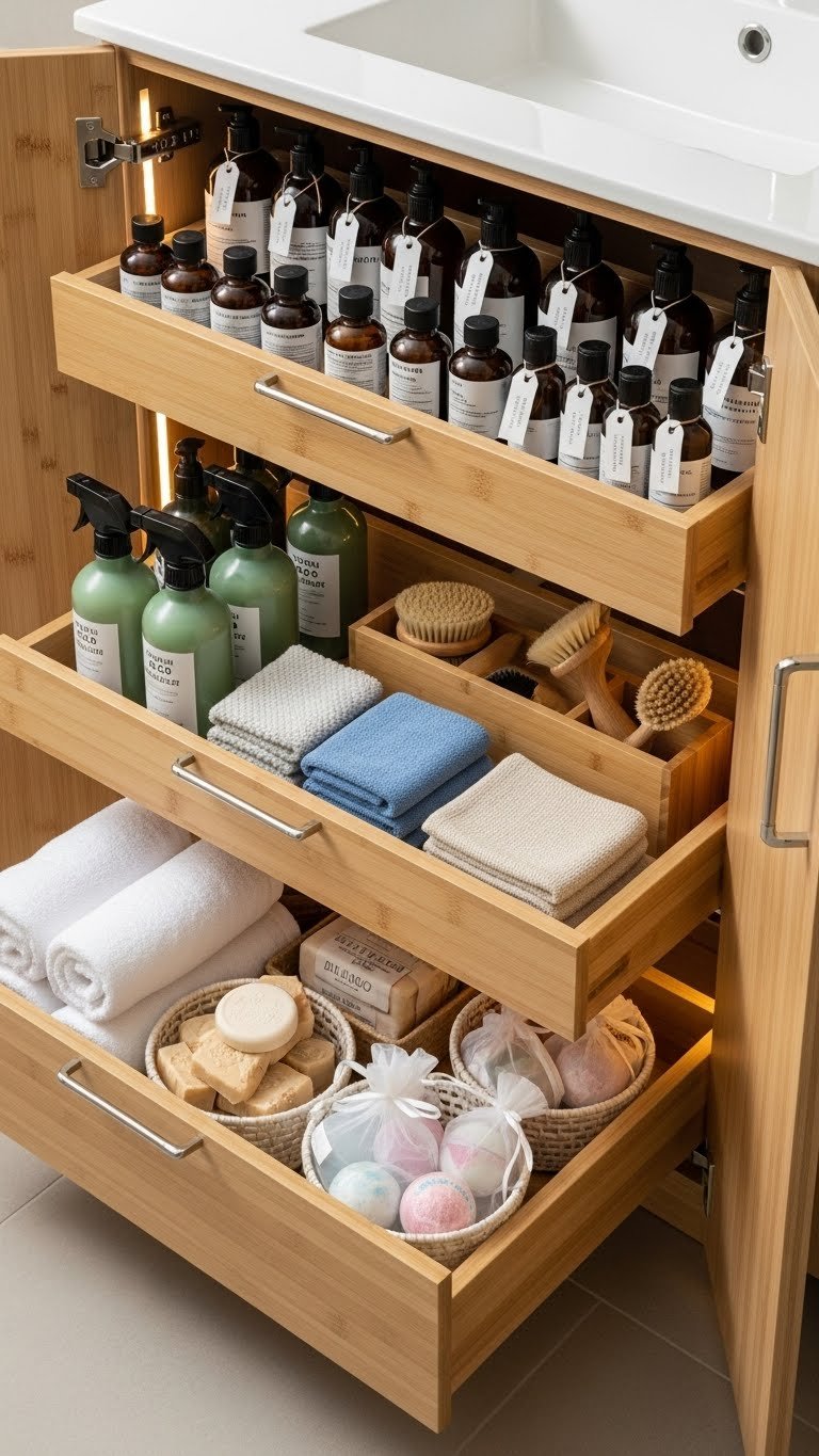 Opening a neat drawer is genuinely calming. When everything has its place, your bathroom feels like a sanctuary instead of a storage disaster—you’ll feel more peaceful every time you brush your teeth or do your skincare routine.