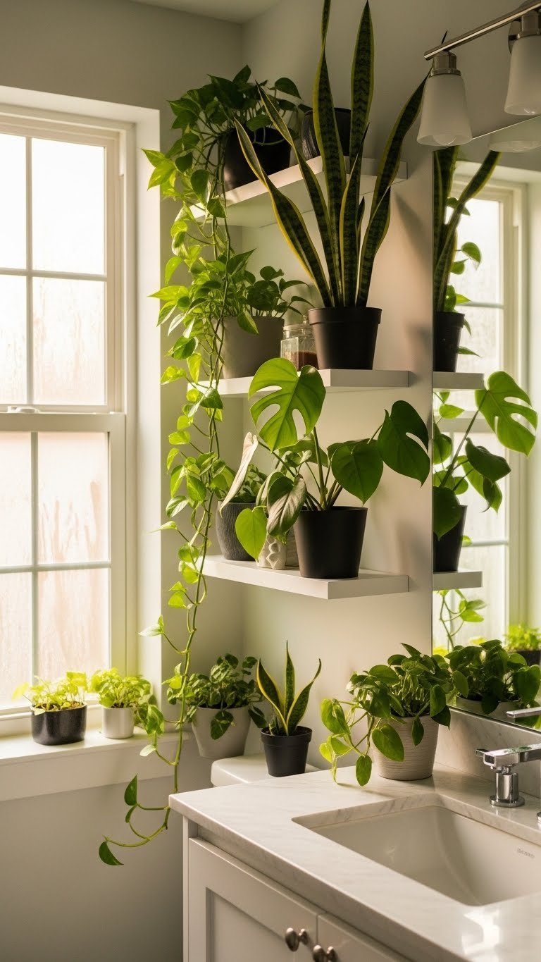 The moment you add living green, your bathroom stops feeling sterile. Plants create a sense of calm and connection to nature—you’ll notice yourself relaxing more and rushing less through your routine.