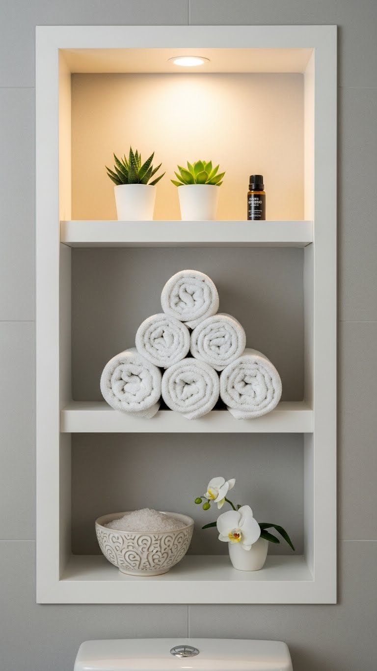 Everything stays tucked away but accessible, and your bathroom maintains that calm, uncluttered feeling. You get function without sacrificing the spa-like aesthetic you’re building.
