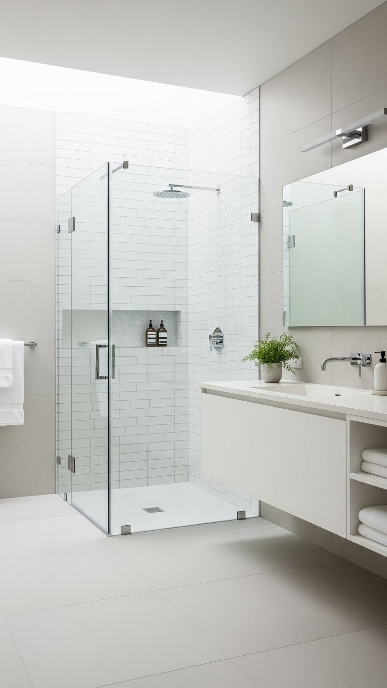 Your floor becomes visible, light flows freely, and the space stops feeling cluttered the moment you walk in. It’s one of the fastest ways to make a bathroom feel intentional and spa-like.