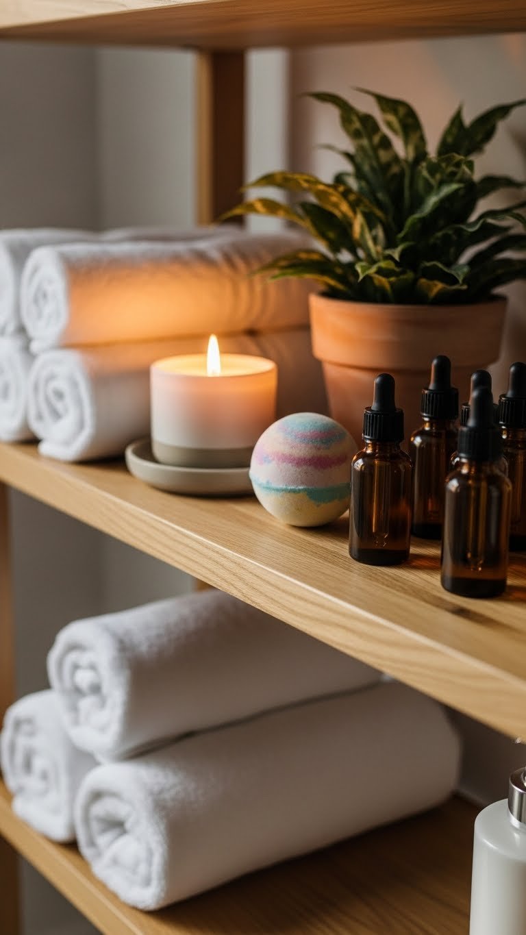 The moment you step into your bathroom, calming scents wrap around you. This sensory addition transforms your space from functional to genuinely retreat-like—you’ll catch yourself lingering just for the aroma and calm vibes.