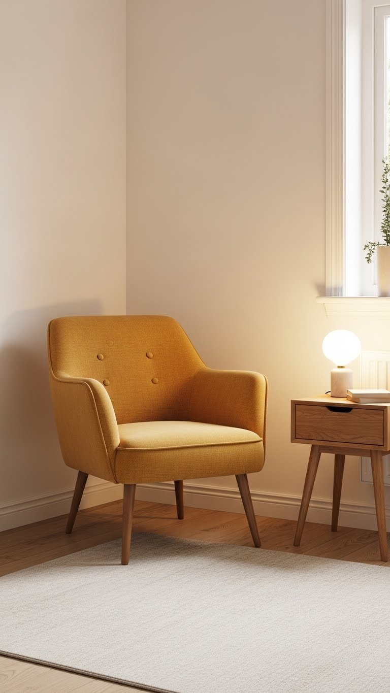 Paint walls a soft ivory like Benjamin Moore’s Cloud White or Sherwin-Williams’ Alabaster (check undertones—you want the warm version). Choose upholstered pieces in cream with brass nailhead trim or metal legs. You can find nailhead-trim chairs at Article, West Elm, or Wayfair for $300–$800, or score vintage pieces at thrift stores for $30–$100. Paint is $30–$60. Styling this look takes an afternoon; painting takes a weekend.