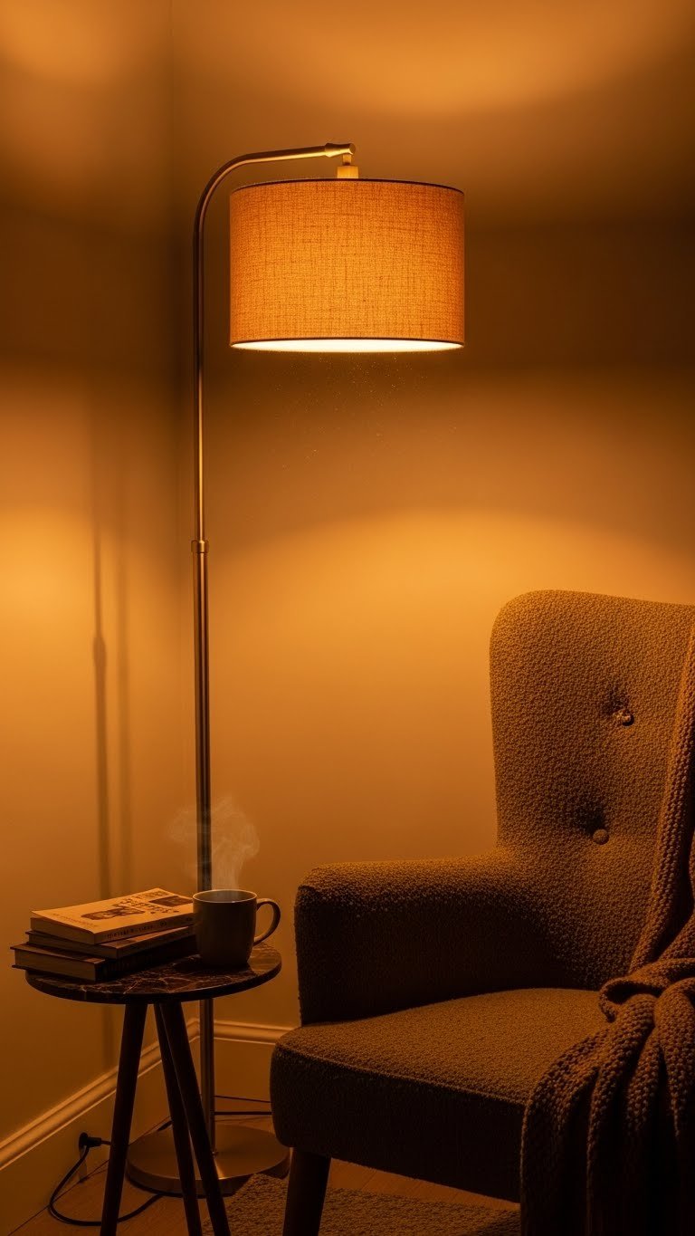 Paint walls a cream like Benjamin Mason’s Swiss Coffee or Sherwin-Williams’ Alabaster. Source or keep deep wood furniture in walnut or dark oak—this creates visual weight and sophistication against cream. Install warm brass or copper lighting ($50–$200 per fixture from Wayfair, IKEA, or vintage sources). Paint is $30–$60. Lighting installation takes a few hours if you’re handy, or budget a professional electrician ($150–$300). This comes together over a weekend of painting plus lighting updates.