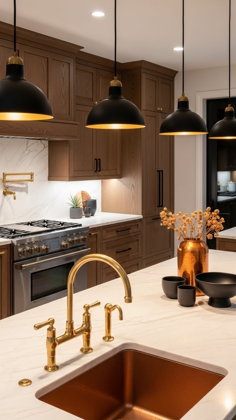 Pro tip: Mix brass with wood tones—they complement each other beautifully and prevent the room from feeling too metallic.