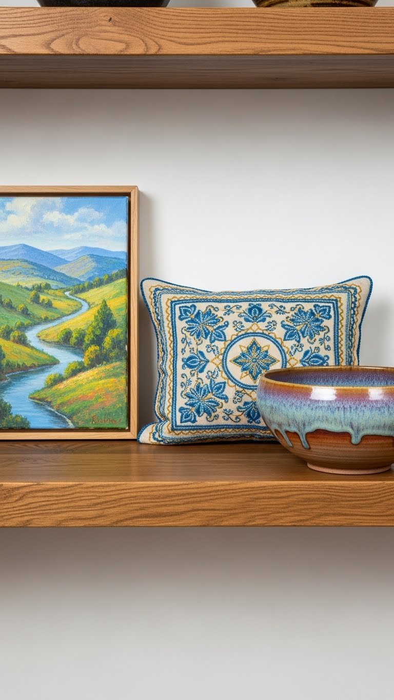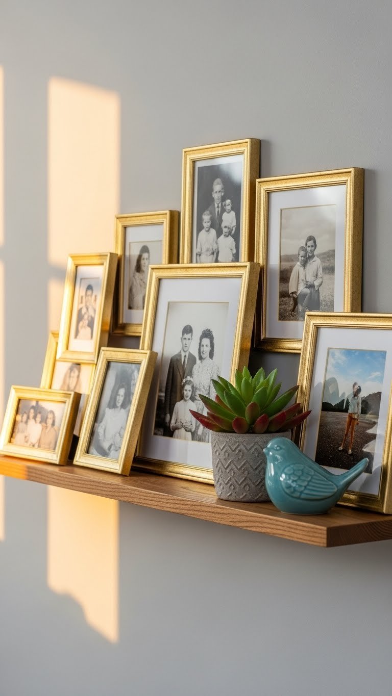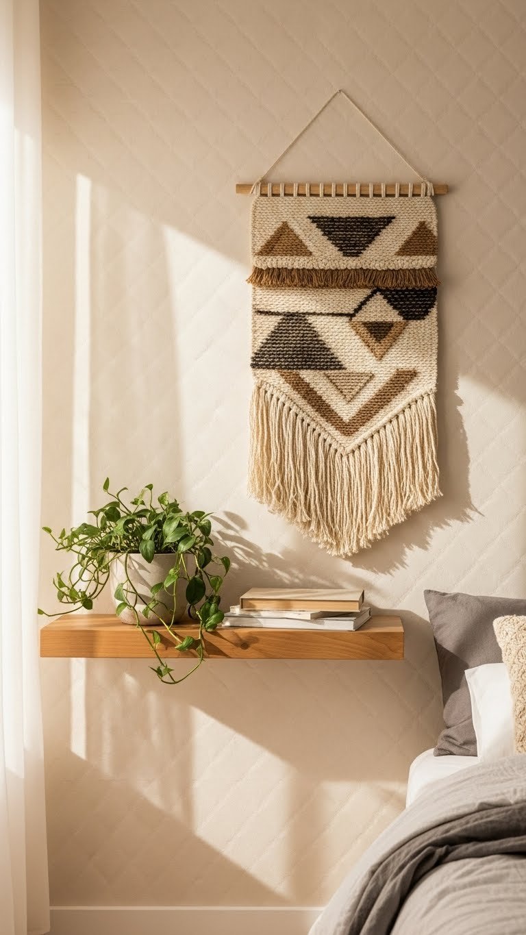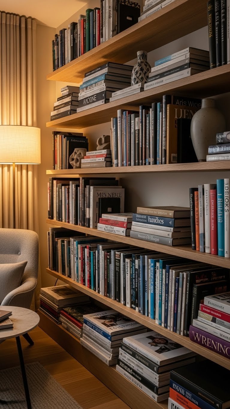 Floating shelves pull your storage upward instead of outward, making tiny rooms feel bigger. You’ll use every inch of vertical space without the bulk of traditional cabinets.