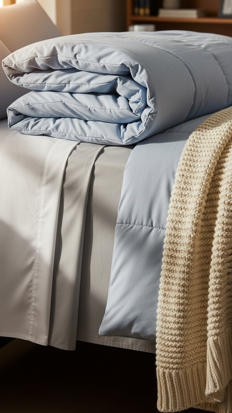 Folding at counter height instead of on a bed or table saves your back. Storing supplies at arm’s reach means less reaching and bending.