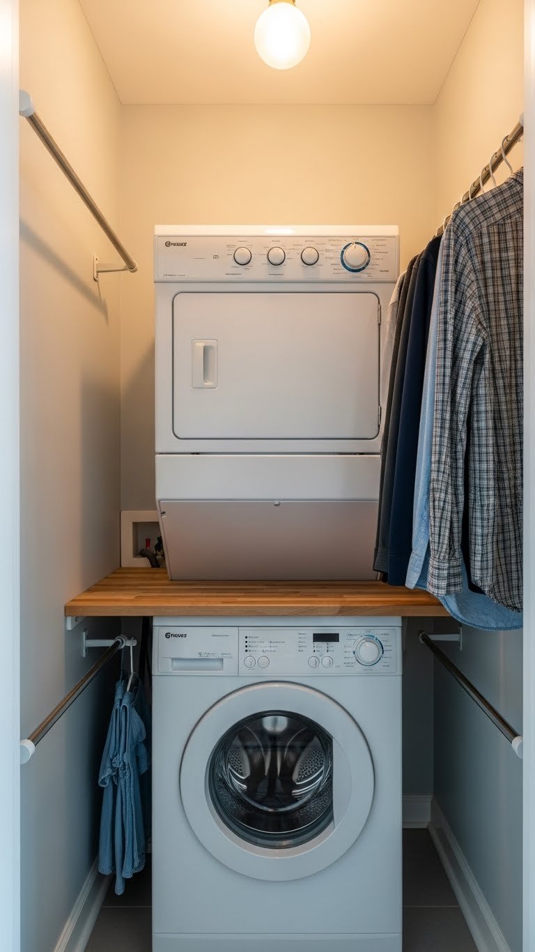 Stacking saves you nearly half the floor space of traditional side-by-side units. This is a game-changer if your room is narrow or you need space for other functions like a folding station or storage.