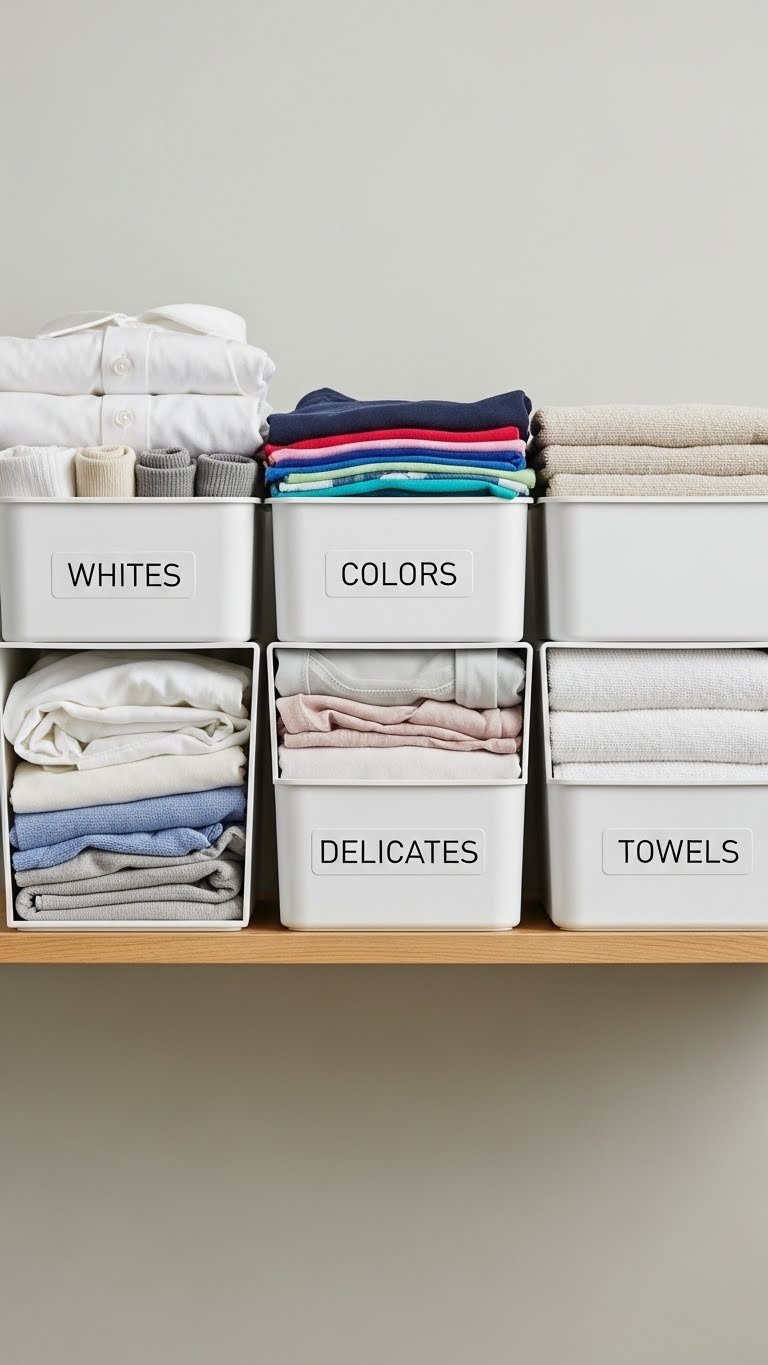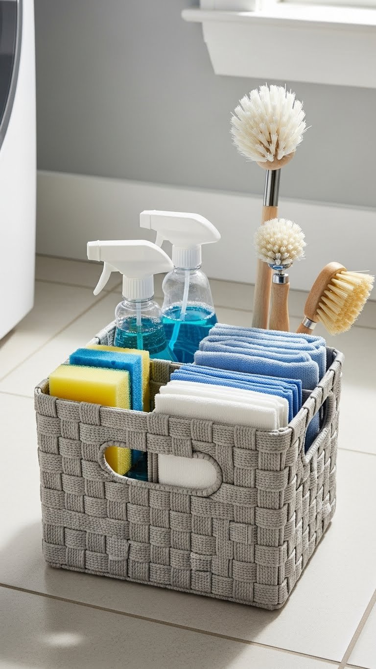 Coordinated basket sets cost $40–$120 for a collection of 3–5 from Target, Container Store, or Wayfair. Label makers are $15–$30. Total investment: $60–$150. This is a quick weekend project—about 1 hour to fill and label everything.