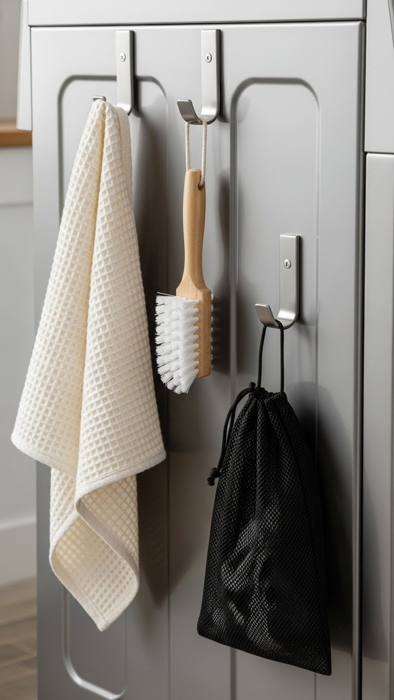 Over-door organizers cost $15–$50 depending on size and material. They’re super easy to install—just hang on the door without tools. This is a free or cheap fix if you already have the organizer. Takes 10 minutes to install and fill.