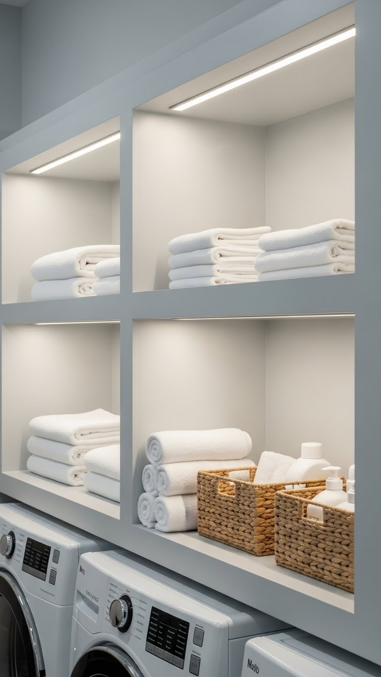Your space feels brighter and more inviting. You actually see what you’re doing. Task lighting makes folding and stain-treating easier.