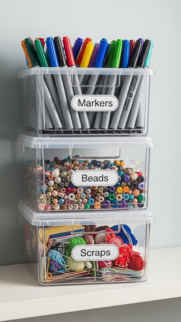 Clear containers let you see what you need at a glance without hunting. Labels prevent confusion and waste.