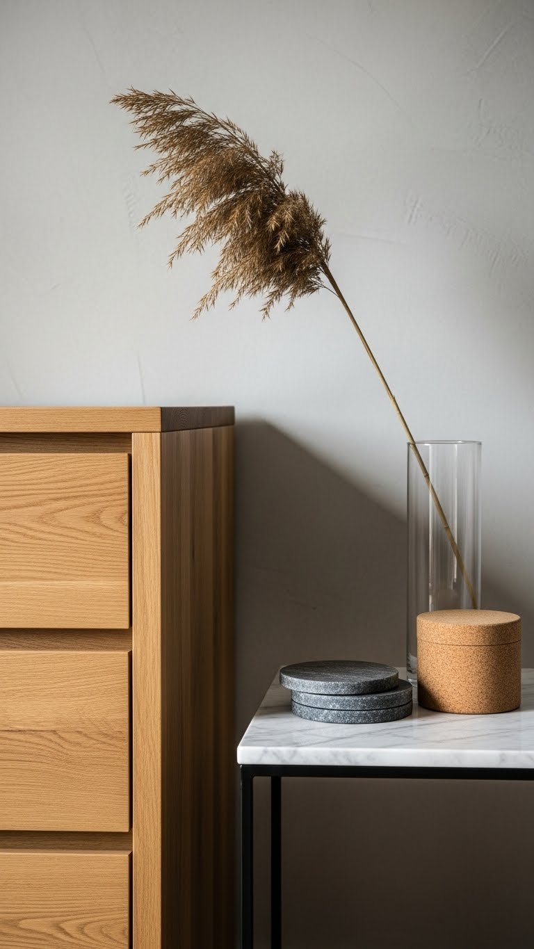 Natural materials add character and warmth. Reclaimed wood or stone counters are conversation starters that make the space feel less utilitarian.