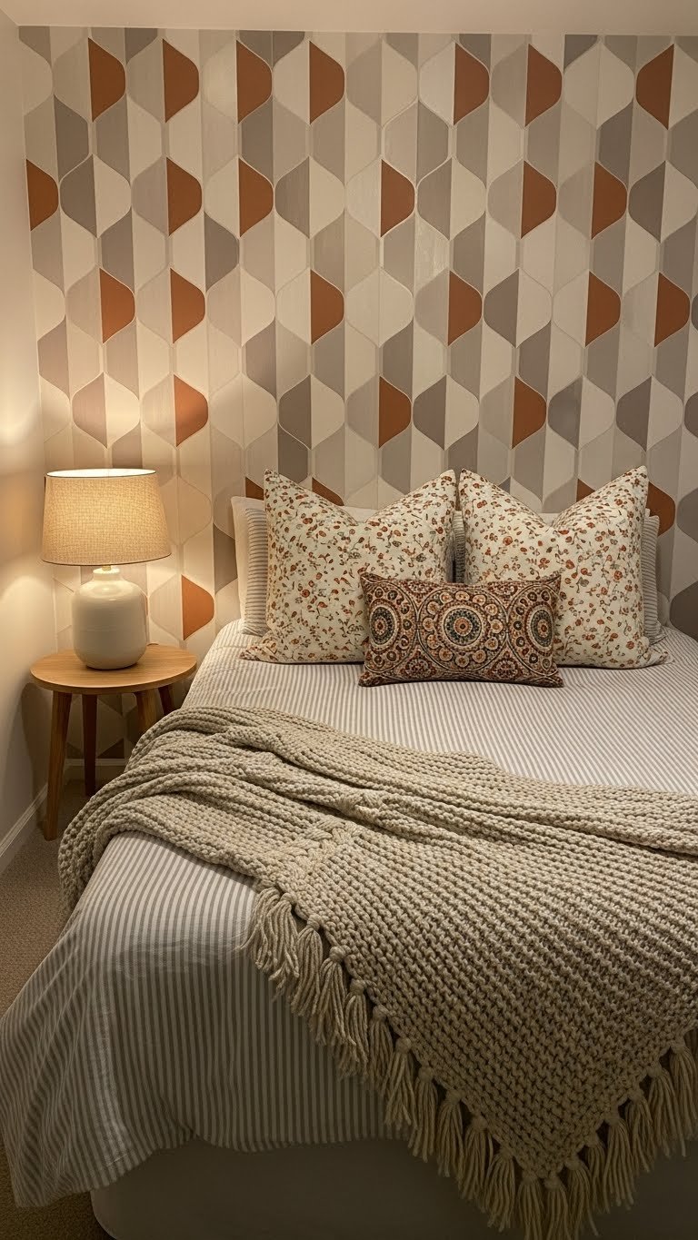 Your bedroom becomes a cozy sanctuary full of personality and visual richness. Layering patterns creates intimacy and makes small spaces feel intentionally curated rather than bare.