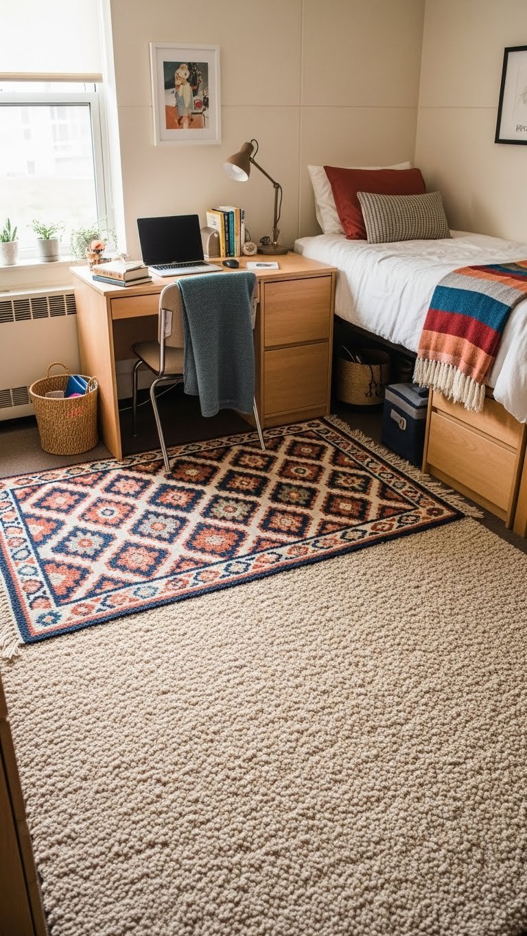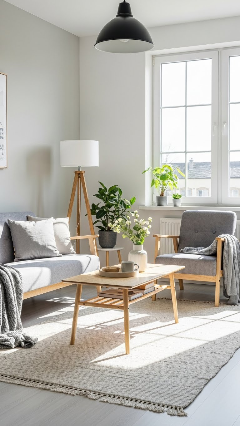 Open-concept small spaces need visual boundaries. Use area rugs, furniture arrangement, and lighting to create distinct zones for sleeping, working, and relaxing—this tricks your brain into feeling like you have multiple rooms instead of one studio.
