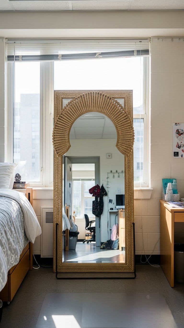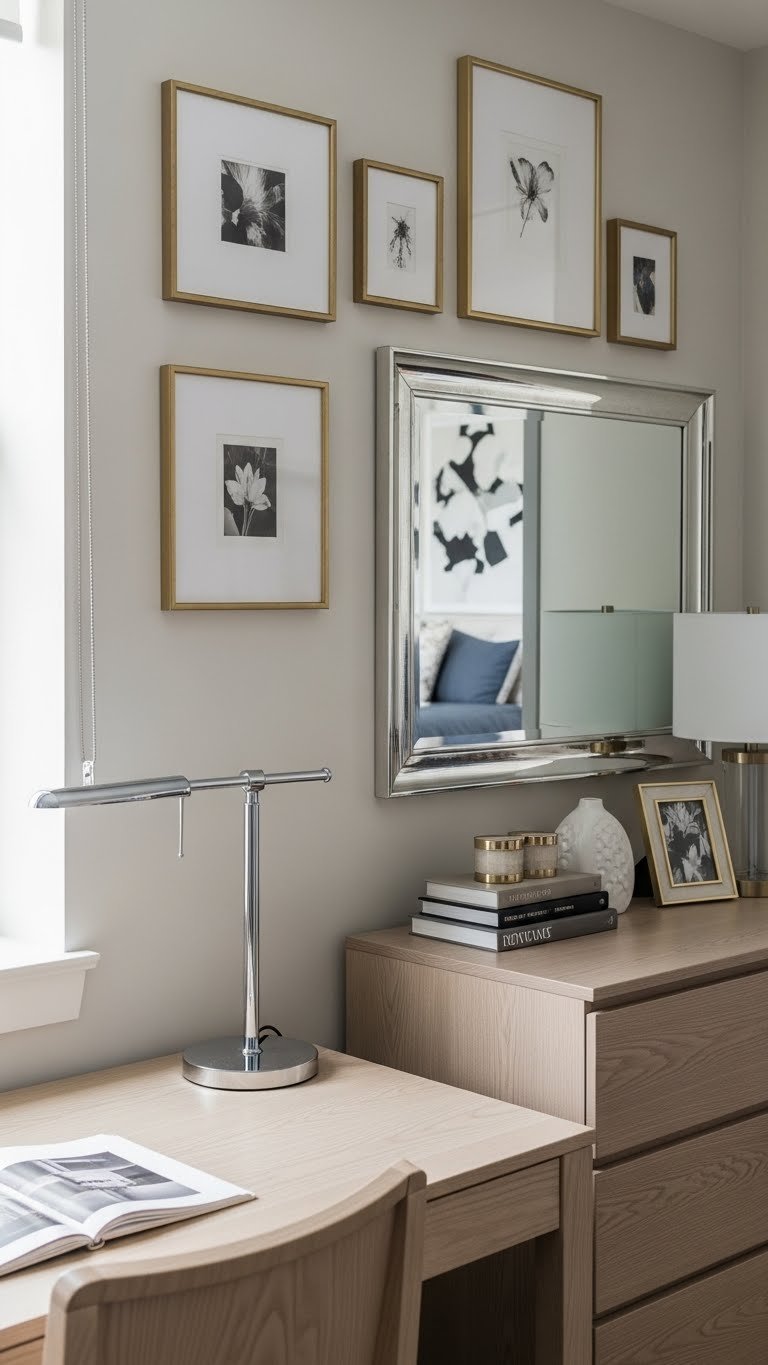 Lean a full-length or oversized round mirror against a wall (no installation needed—perfect for renters), or hang one above a console table for function and reflection. Prices range from $30–$150 depending on frame style and size. Find options at IKEA, Target, Wayfair, or thrift stores. This 10-minute setup requires only wall space and a willing hand. Pro tip: Avoid mirroring directly across from dark corners; instead, position mirrors to reflect light or interesting artwork.
