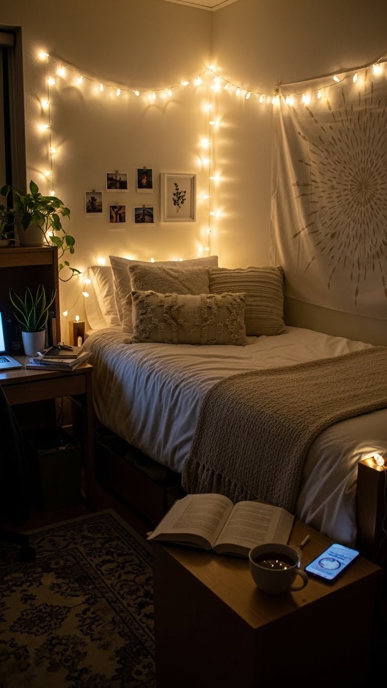 Now your room feels warm and intentional instead of institutional. You can adjust lighting based on mood, and the space immediately feels more like a retreat than a box.