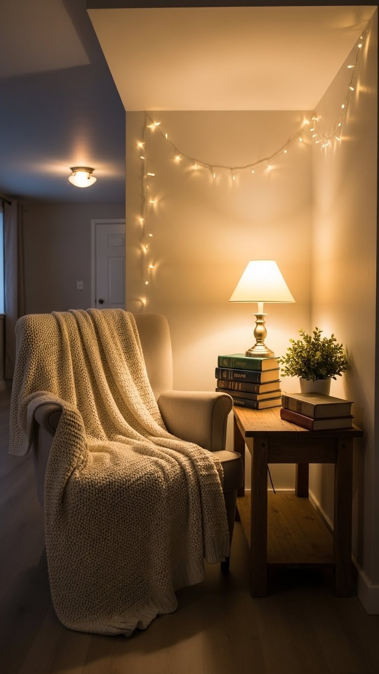 Single overhead lights make small rooms feel harsh and institutional. Layered lighting with multiple fixtures in warm tones creates coziness, makes the room feel larger (because you can control which areas are lit), and costs less than you’d think.