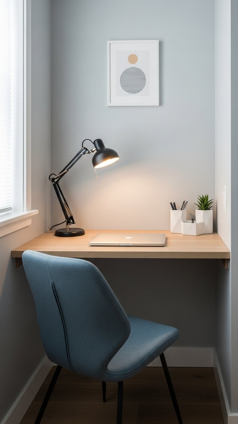 Vertical storage is your secret weapon in a small room. Floating shelves draw the eye upward, add storage without floor footprint, and let you display items that bring you joy while keeping essentials within reach.