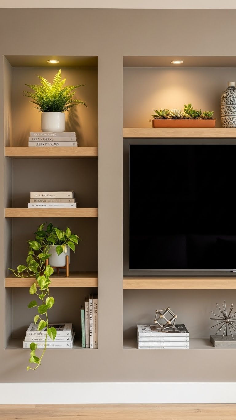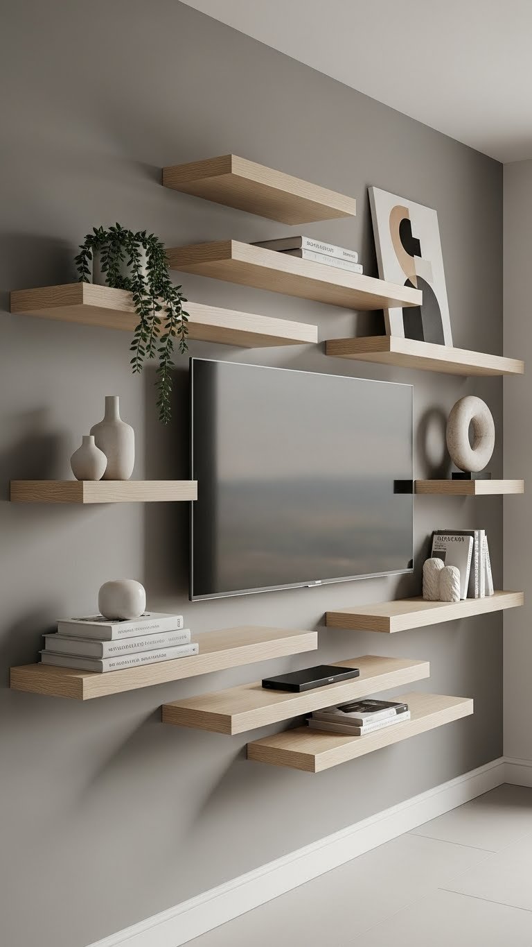 A corner sectional ($800–$1,200) tucked against a wall plus floating shelves ($150–$400 from IKEA, Target, or Wayfair) creates a cozy nook that maximizes every inch. This is a half-day weekend project if mounting shelves—or keep it renter-friendly with no wall damage if you don’t add storage. The spatial strategy takes 30 minutes to plan.