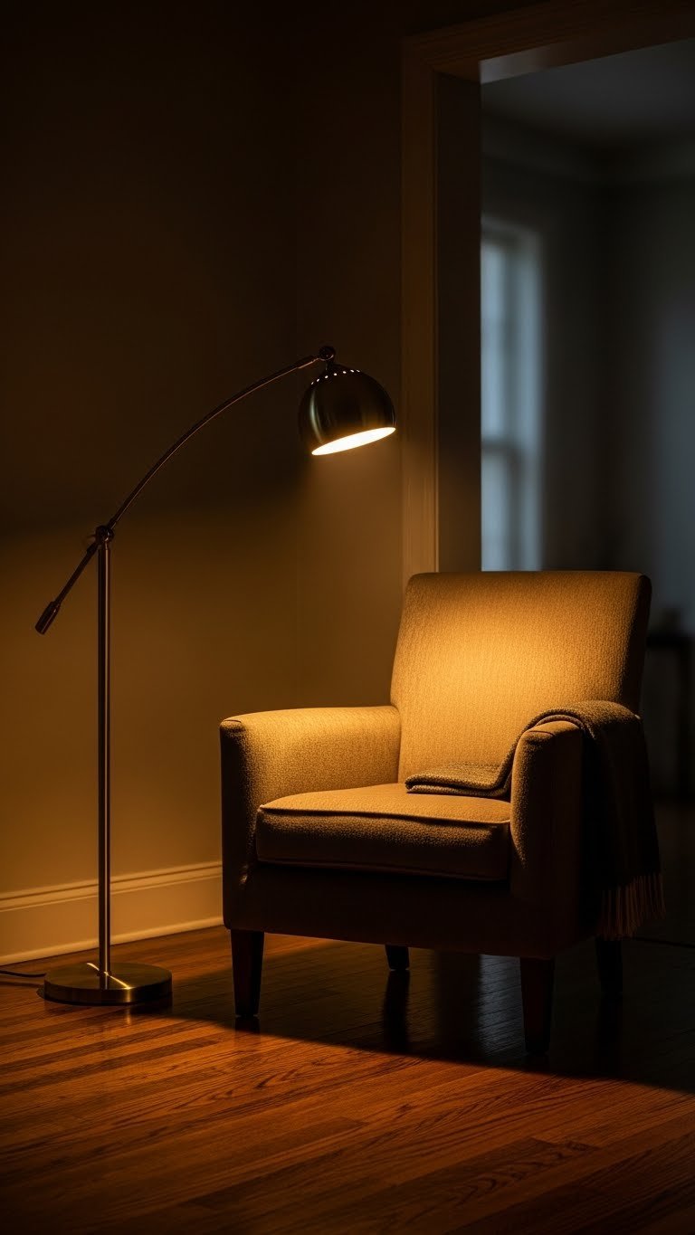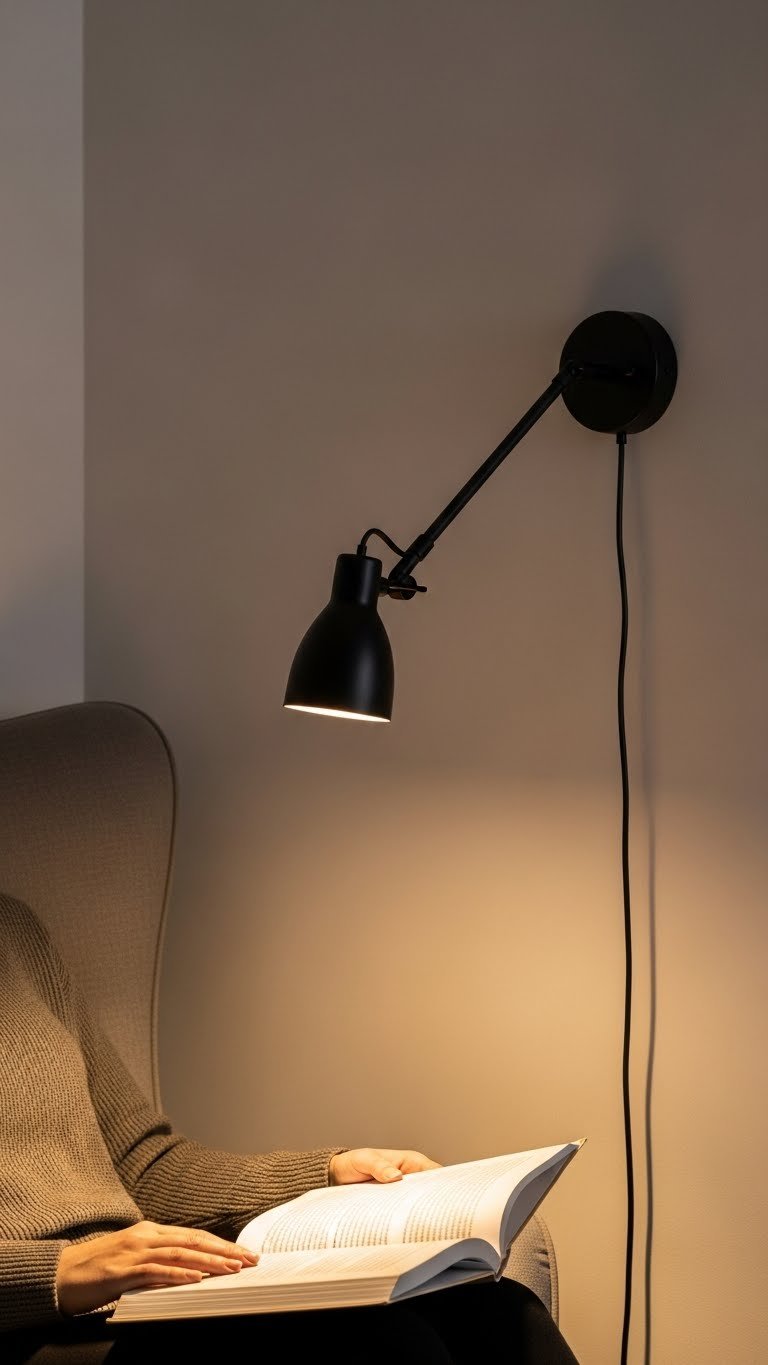 Position the sectional’s corner where natural light is best, position the chaise perpendicular to catch light from a nearby window or where you’ll place a floor lamp. A quality sectional with chaise runs $1,000–$1,800 from Wayfair or Article. Add a swing-arm floor lamp ($100–$200) and side table ($150–$300) for function. One afternoon to arrange, but the result is a room within a room.