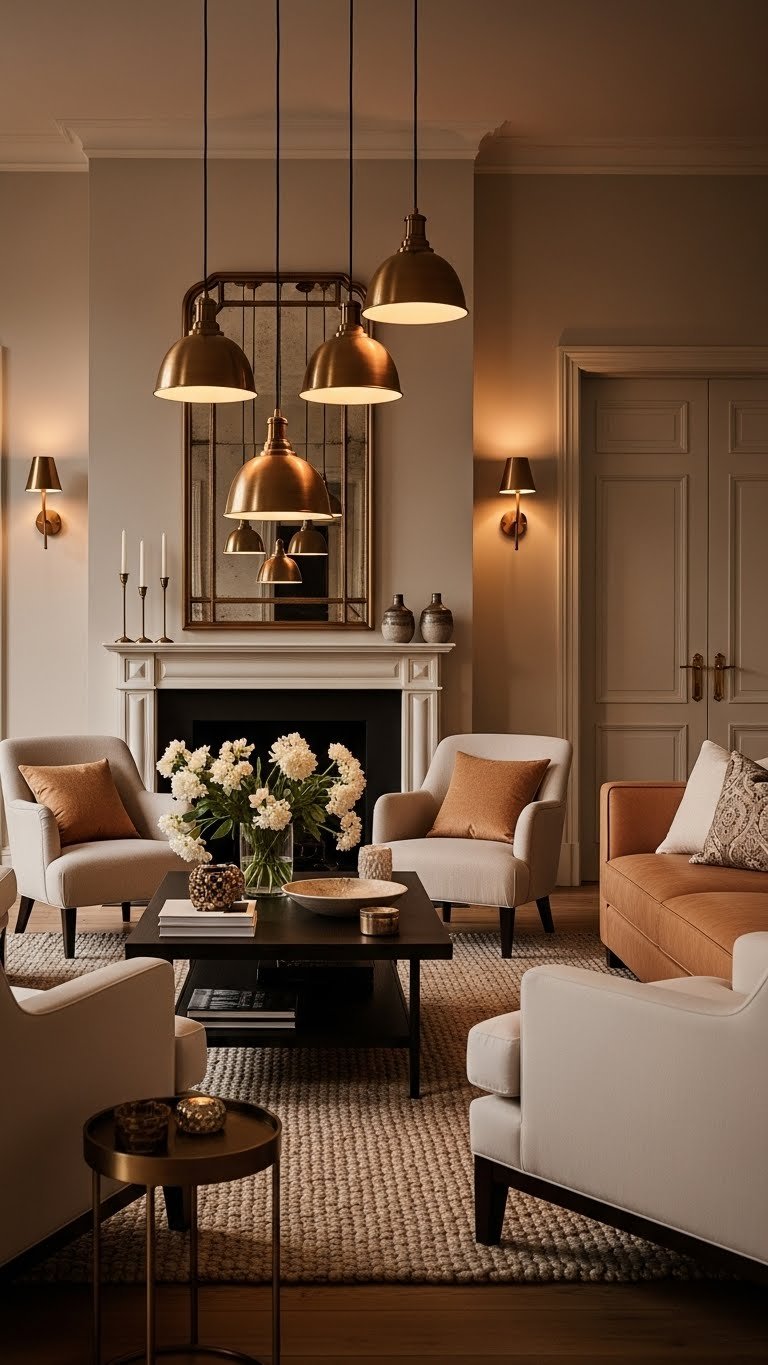 This arrangement gives formal spaces an intentional, curated feeling while keeping traffic flow easy down the center.