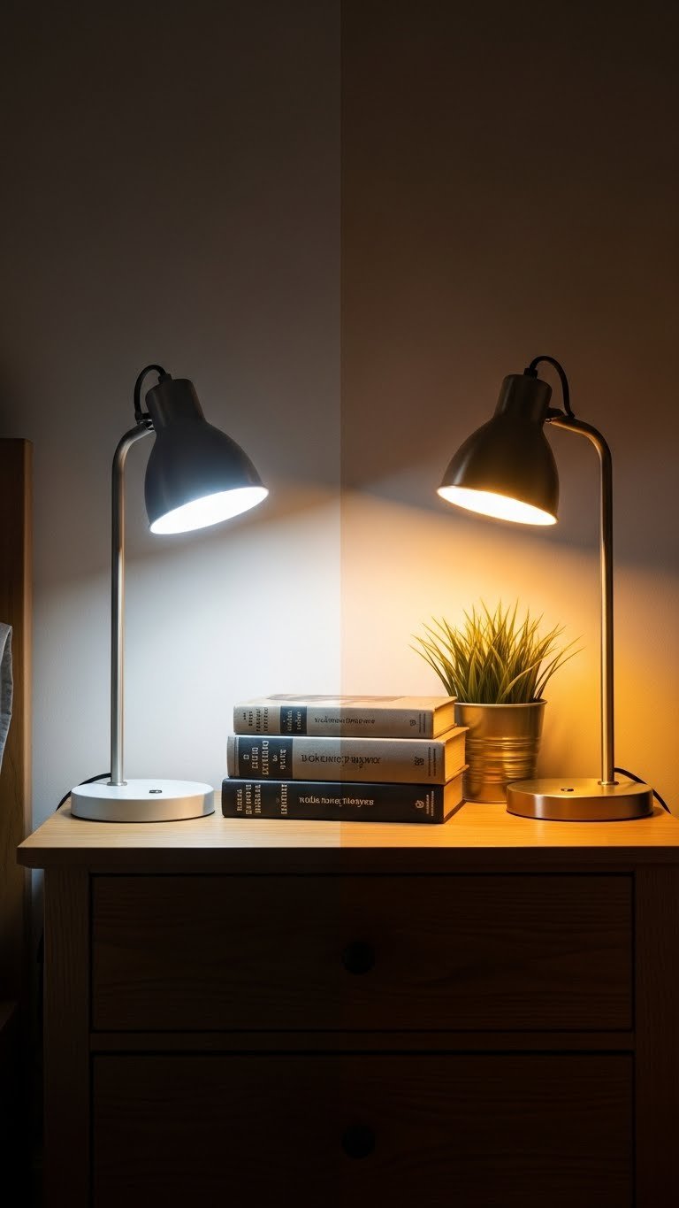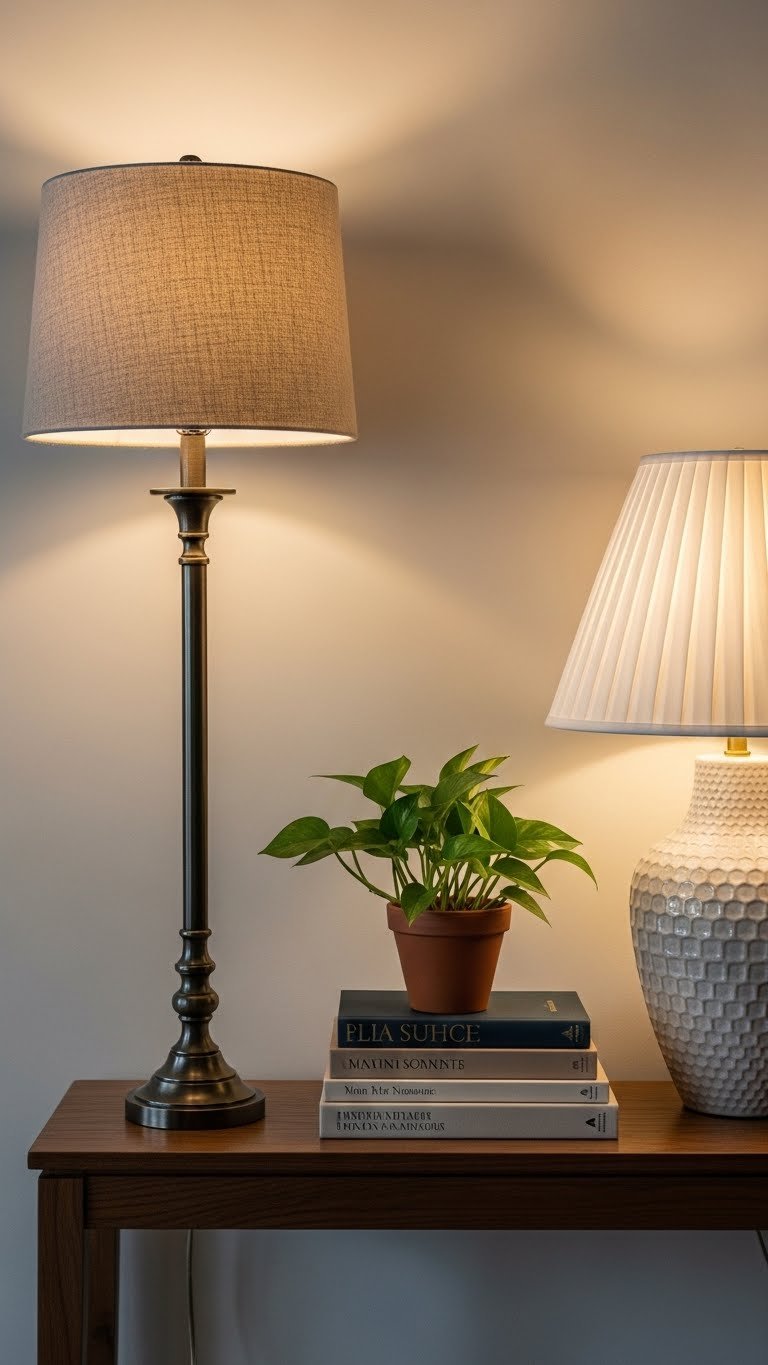 Place one taller lamp (30–36 inches) on a console or side table to bounce light upward and outward. Pair it with a shorter accent lamp (18–24 inches) on a low table or shelf nearby. This creates visual rhythm and functional flexibility—you can turn on just the tall one for ambient glow or both for task lighting. Target, IKEA, and Wayfair have great options in the $30–$80 range; splurge on a designer piece ($150–$400) if it’s a visible focal point.