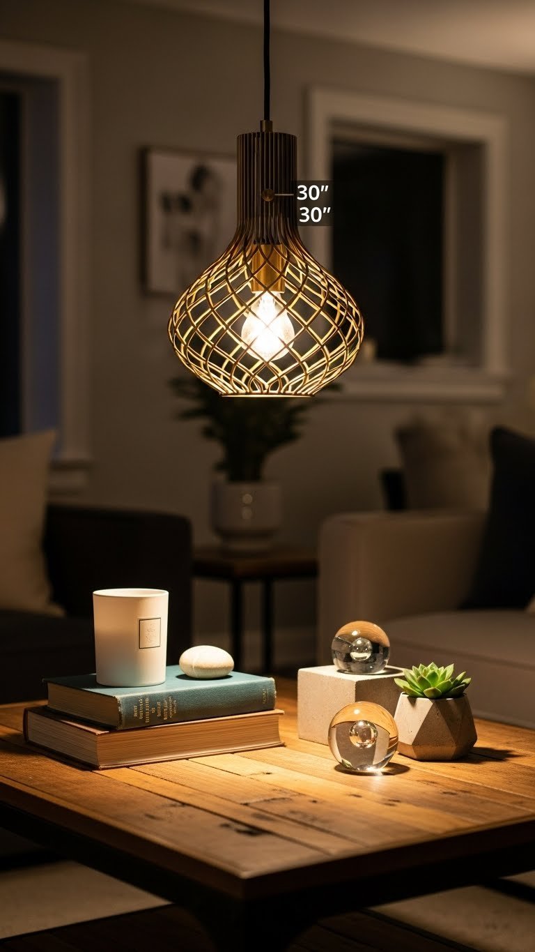 Hang it 30–36 inches above your coffee table or seating cluster. Installation involves basic electrical work; hire an electrician for $150–$300 or DIY if you’re confident ($30 for hardware, 1–2 hours). Pendant styles range from $40–$60 (IKEA, Target) to $300+ (Rejuvenation, Design Within Reach). Choose one that complements your color palette and doesn’t overwhelm your room proportions.