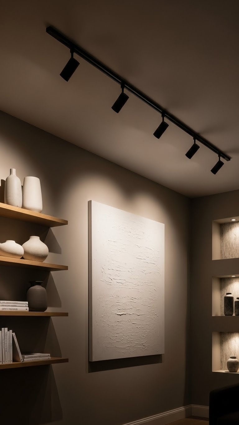 Track lighting lets you direct light exactly where you need it. Adjustable spots move along a rail to highlight different areas—perfect for art collections, architectural features, or display shelves.