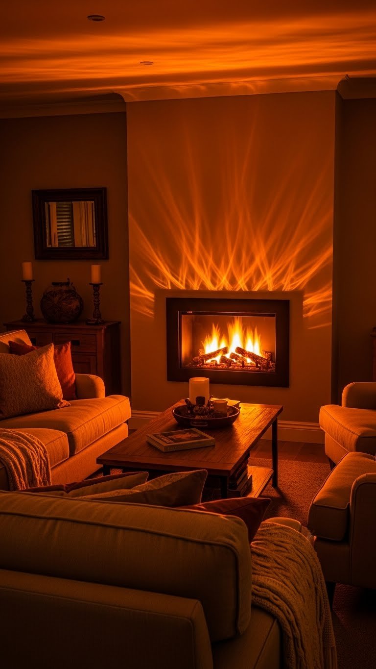 The payoff is massive: a fireplace instantly becomes your room’s focal point, and the glow creates cozy ambiance that electric lighting alone can’t achieve. Layer this with other lighting for complete flexibility.