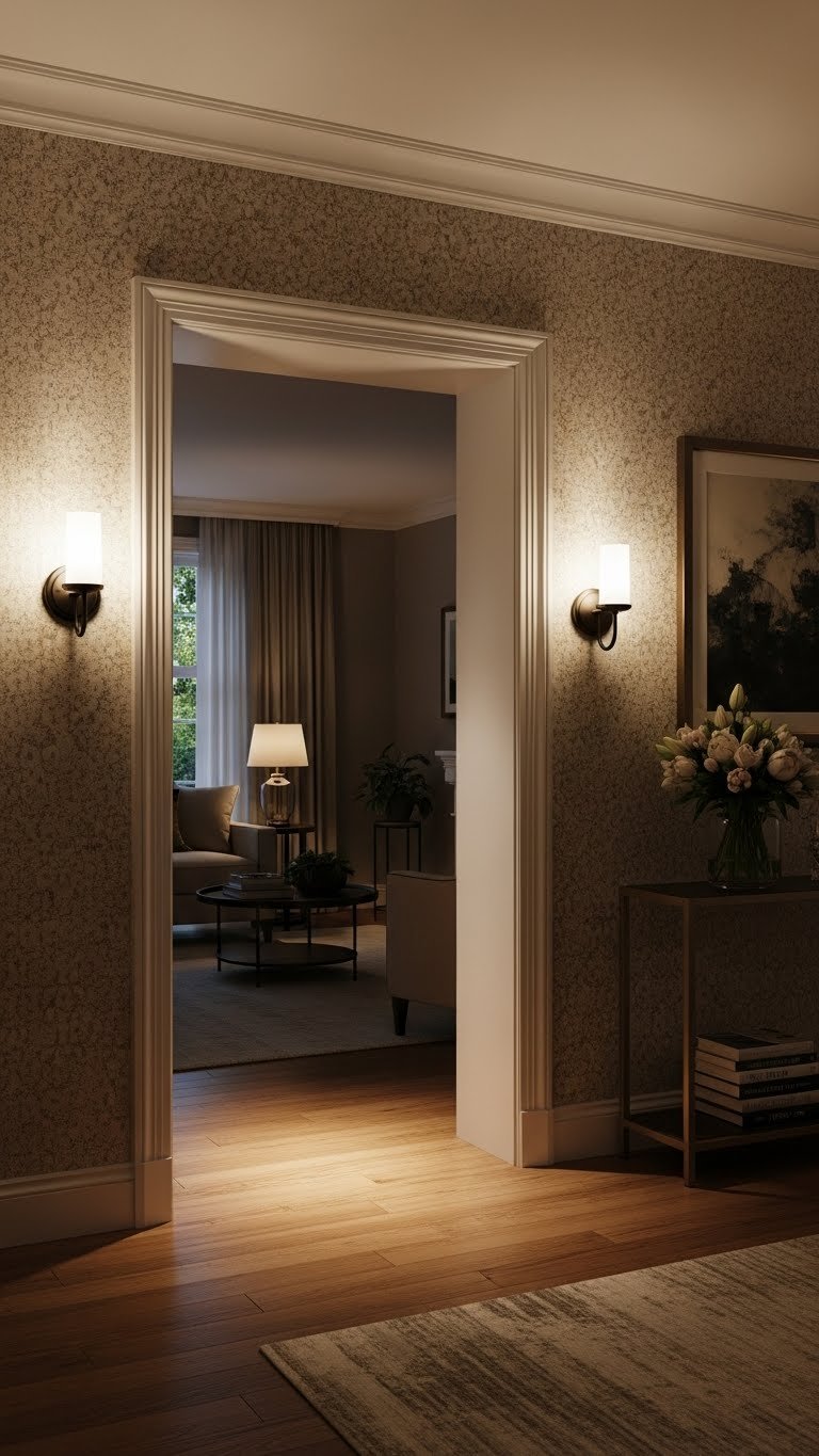 Install sconces at eye level (60 inches high) on either side of the opening. Costs run $40–$150 per sconce plus installation ($100–$200). The payoff is significant: your entryway looks intentional and gallery-like, and guests immediately understand the room’s focal points.