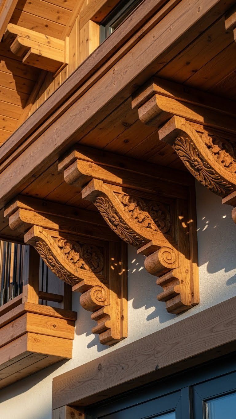 Prefab decorative brackets or rafter tails run $30-$100 each. Most homes need 4-8 pieces depending on roofline ($200-$800 total). Hire a carpenter for installation ($500-$1,500 labor) unless you’re experienced. Once up, they require minimal maintenance. Paint them to match your trim or leave natural wood stained.
