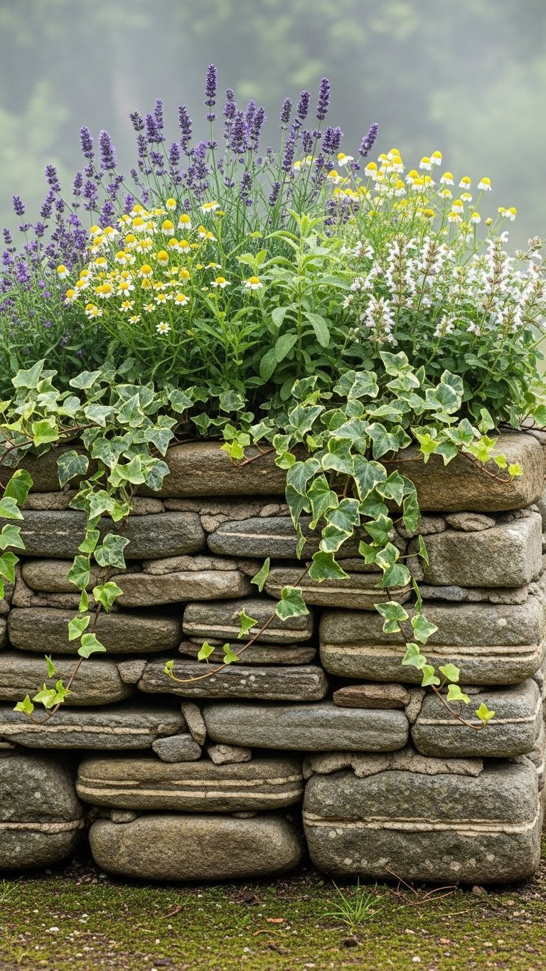 Climbing vines add softness, texture, and vertical interest to plain walls. They’re living design that requires minimal ongoing care once established.