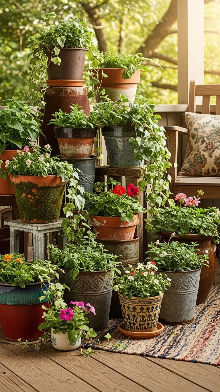 Pro tip: Use odd numbers of plants (3 or 5) per pot for visual balance. Vary heights by adding a small shrub or upright plant in the center. Your entryway transforms into an Instagram-worthy welcome space that makes your home feel established and cared-for.