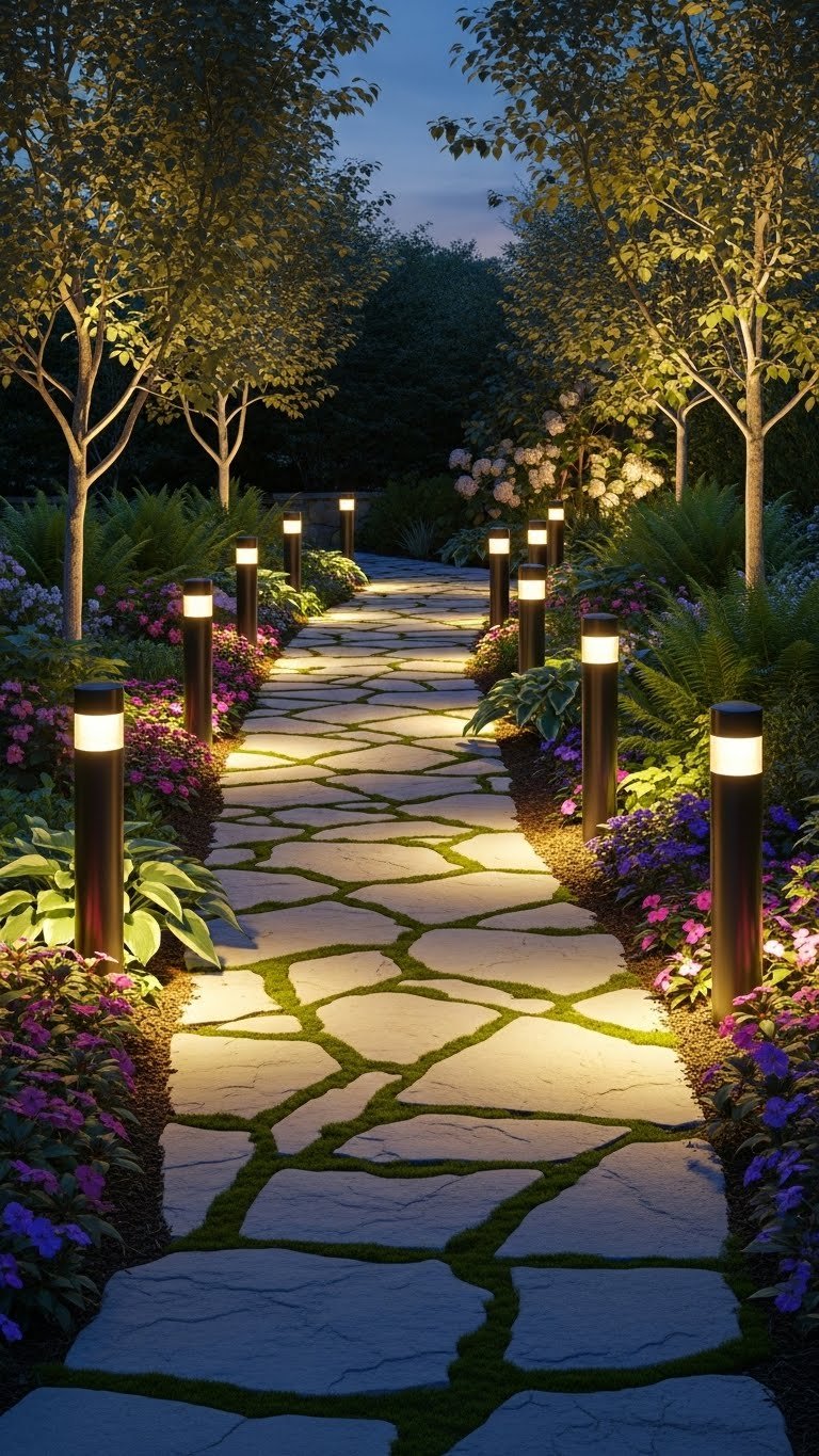 Pro tip: A curved walkway feels more welcoming than a straight one. Avoid harsh white lights; choose warm solar options that evoke ambient mood. Your walkway becomes a visual throughline that guides people safely and signals “this home is thoughtfully designed.”