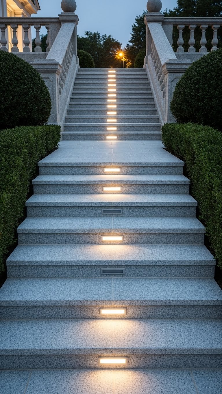 Paint your step risers or edges in a contrasting color ($20-$30 in paint). Alternatively, add contrasting stone trim ($100-$300). Painting takes 2-3 hours. The result guides people visually and adds a custom detail that signals thoughtfulness.