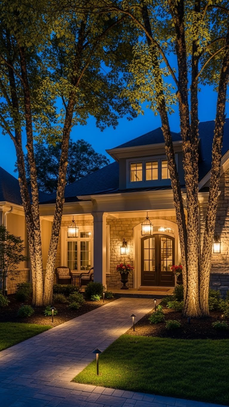 Strategic outdoor lighting does double duty: it makes your home safer and looks stunning after dark. It’s one of the most underrated curb appeal upgrades.