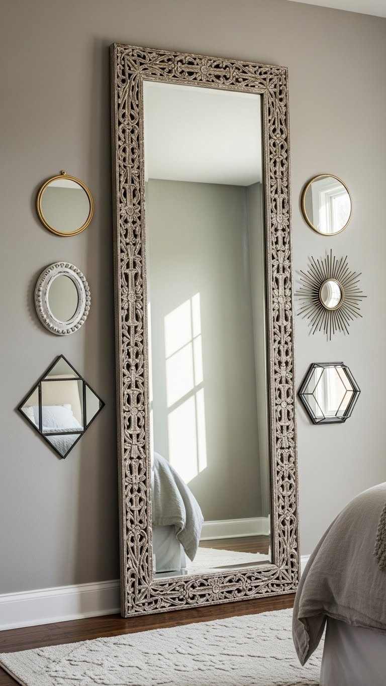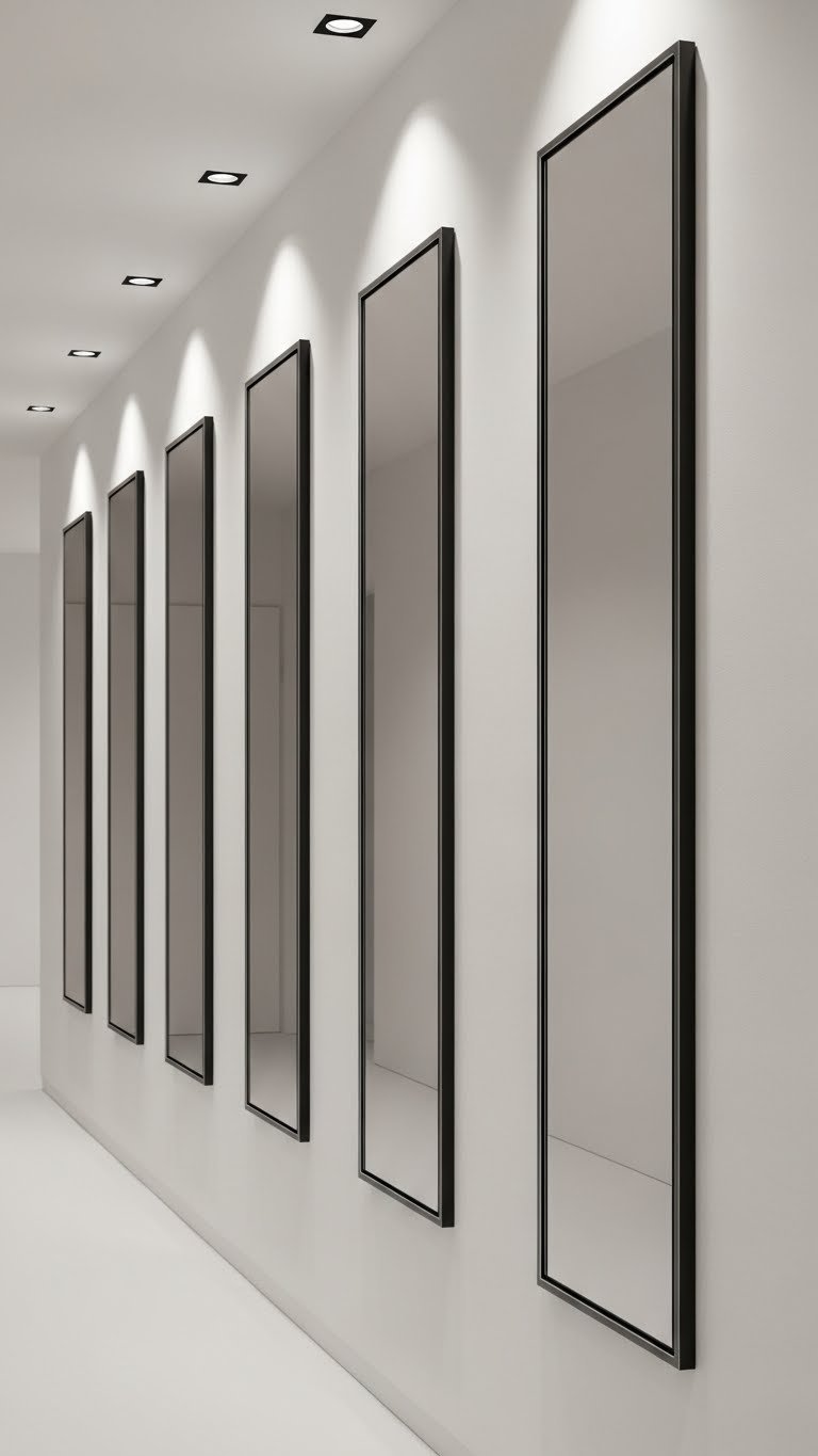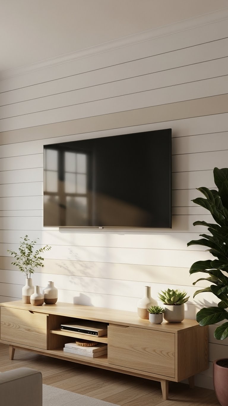 Hang a solid sheer in white or cream ($25–50 per panel) as your base layer, then add a striped panel with vertical lines ($50–100 per panel) in a complementary color from Wayfair, Target, or Etsy. Keep your stripe width moderate—too-thin stripes can look busy, too-thick ones flatten the illusion. Use simple metal hardware ($20–30) that doesn’t compete with the stripes. Installation: 25 minutes. The vertical lines naturally guide the eye upward, making ceilings appear higher. This optical illusion is especially helpful in rooms with low ceilings or small windows.