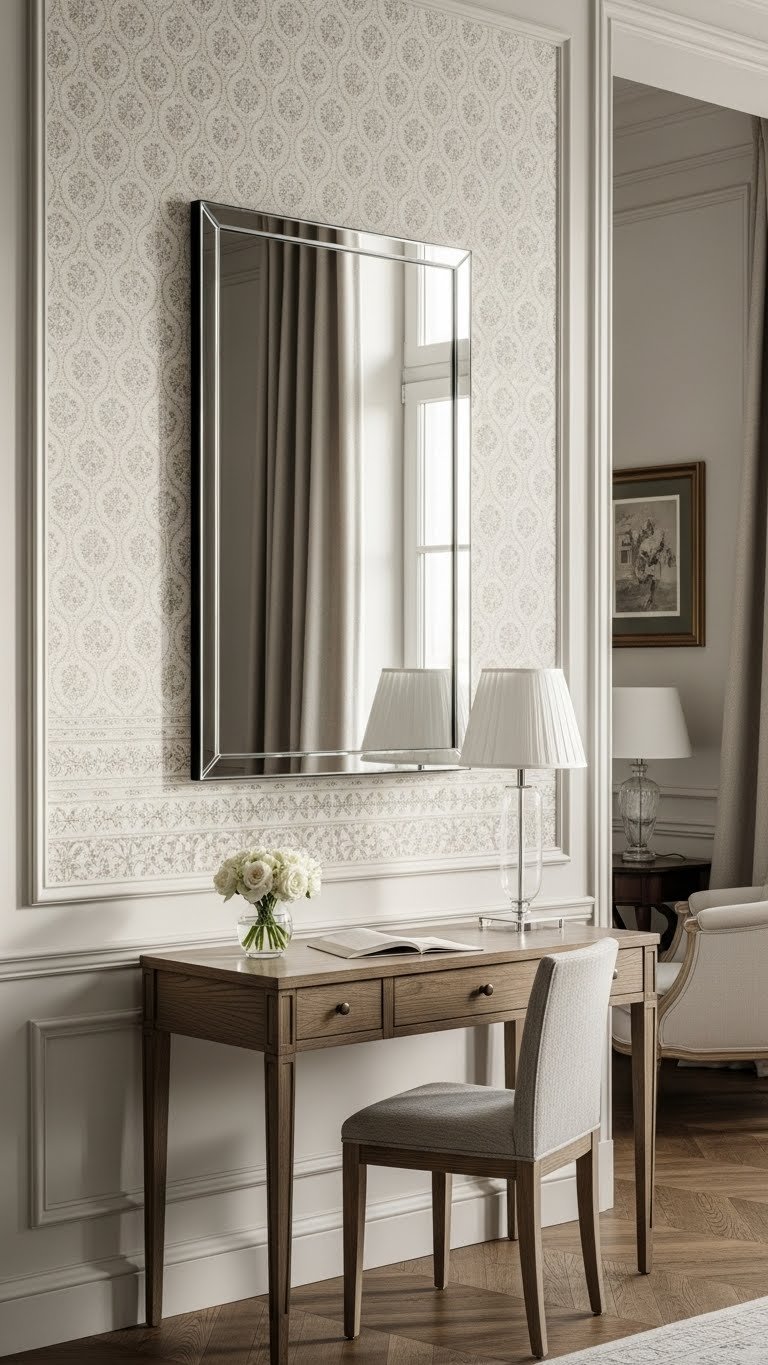 Solid sheers alone can feel one-note, but adding a patterned layer behind them gives you intrigue without overwhelming the space. This approach lets the pattern peek through the sheer, creating a sophisticated mixed-print effect.