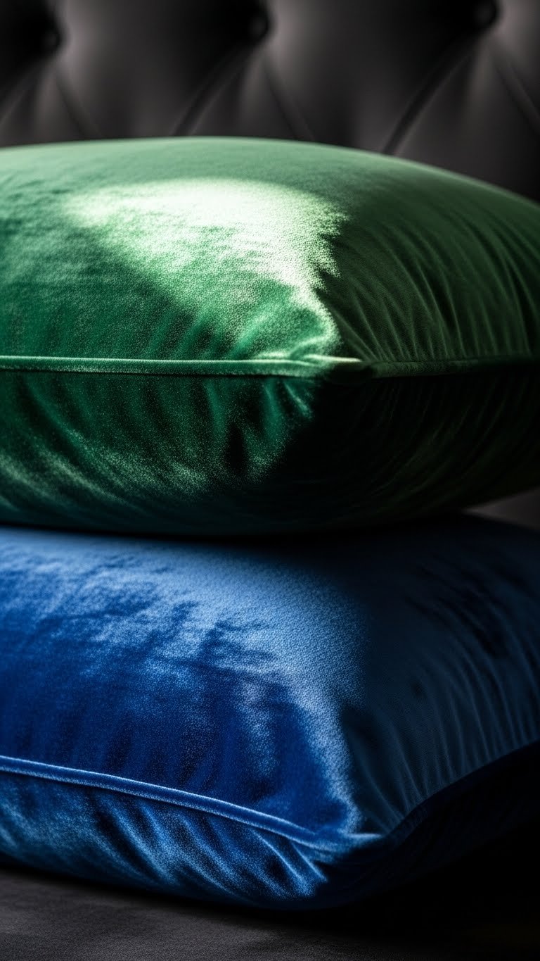 Pro tip: Deep jewel tones (emerald, sapphire, burgundy) feel more luxurious than bright colors and hide dust better.
