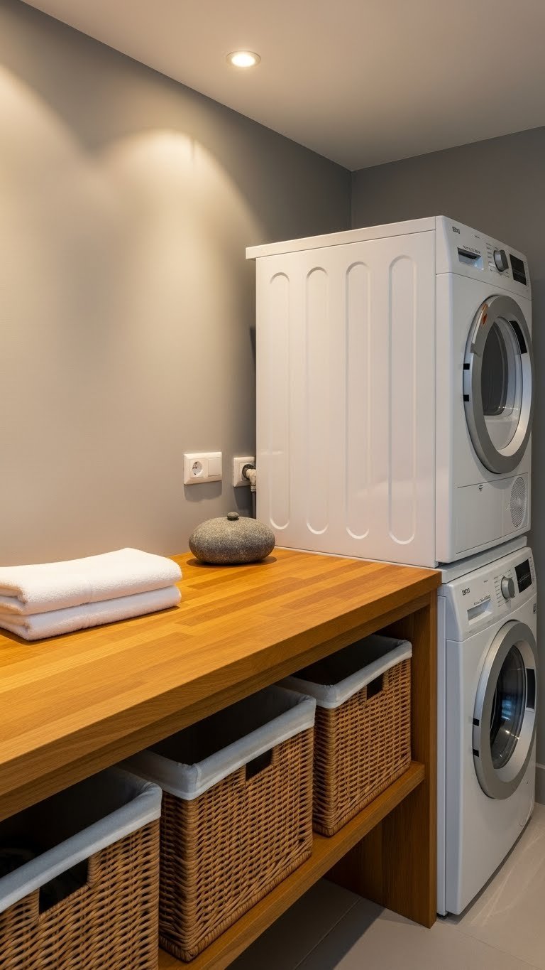 A fresh paint color makes your folding station feel intentional and even pleasant—and it costs almost nothing. Soft greens, warm taupes, or pale blues are trending and make the space feel less utilitarian.