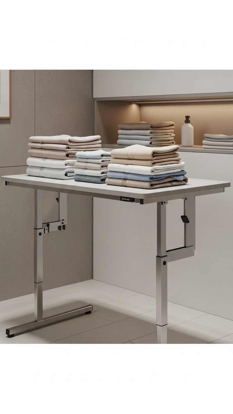 Electric adjustable tables run $300–$800 (brands like FlexiSpot make laundry-room versions), while manual crank models cost $150–$300. Look for weight capacity of at least 150–200 lbs and smooth adjustment mechanisms. Installation takes 30–45 minutes and mostly involves assembling the base. Pro tip: Set your ideal standing height at 30–34 inches and remember it for future reference.