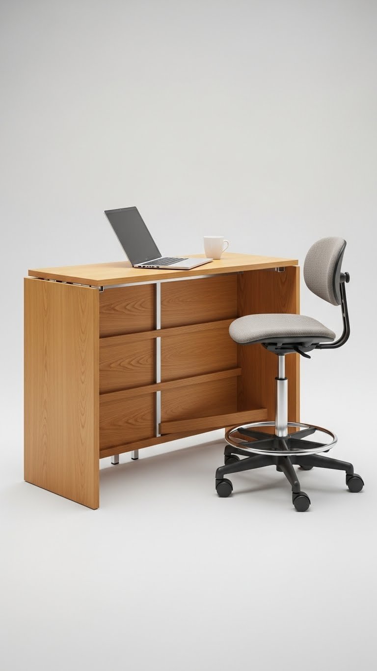 You transform an unused wall into a functional work zone that disappears when not in use.