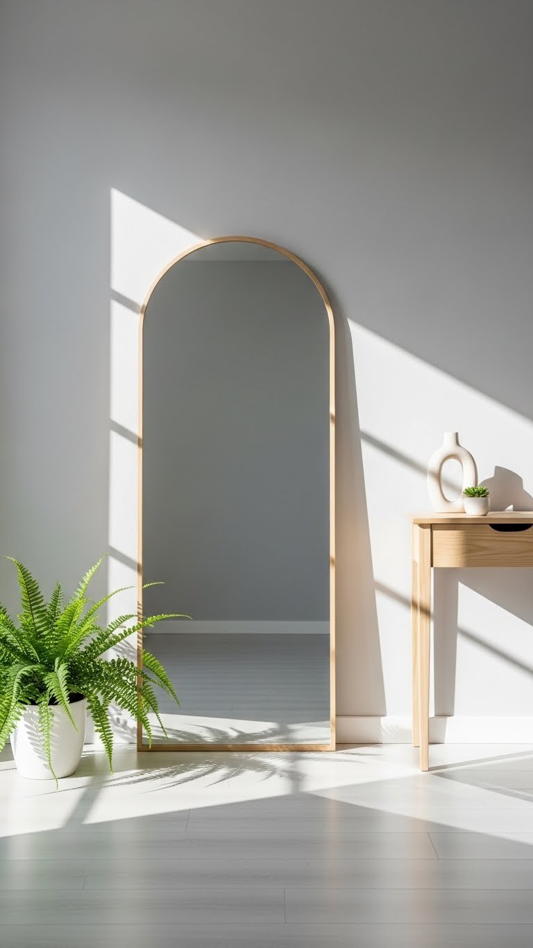 Oversized arched mirrors come in many materials—wood, metal, rattan. Look for options $80–$300 at IKEA, Wayfair, or Amazon. Choose one that’s at least 4 feet tall for maximum impact. The best part? No drilling required. Just lean it against the wall on a console, dresser, or straight on the floor. Takes zero minutes to set up, but looks like you spent the whole weekend styling.