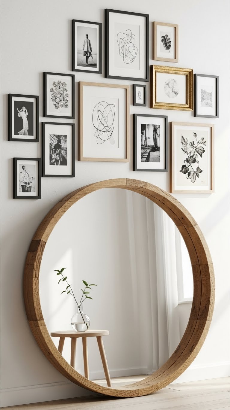 6. Lean a Large Round Mirror Against a Gallery Wall