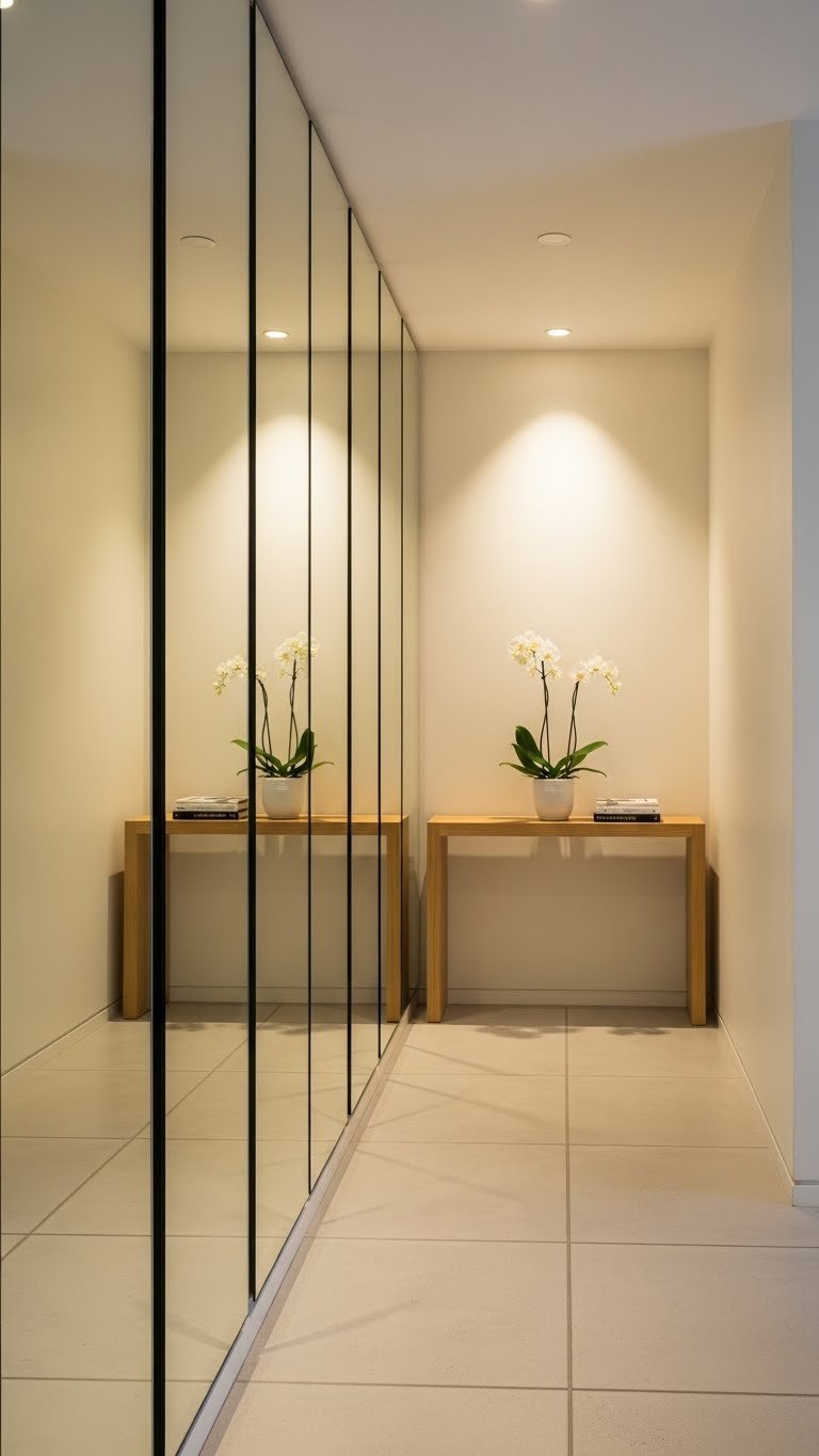 7. Install a Floor-to-Ceiling Mirror Wall in a Narrow Room