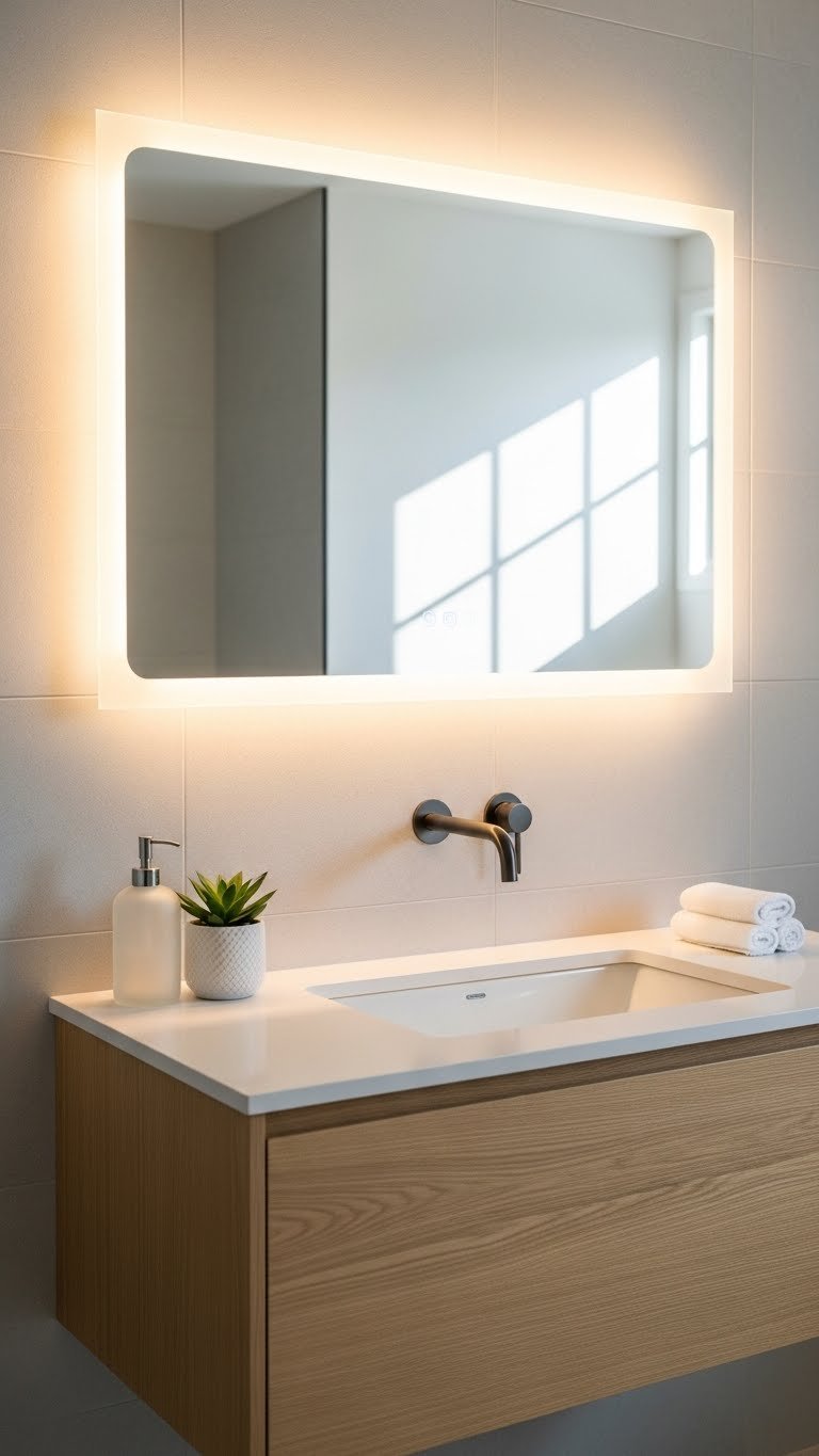 LED backlit mirrors serve double duty: they light your face perfectly for grooming and create ambiance that makes your bathroom feel like a spa.