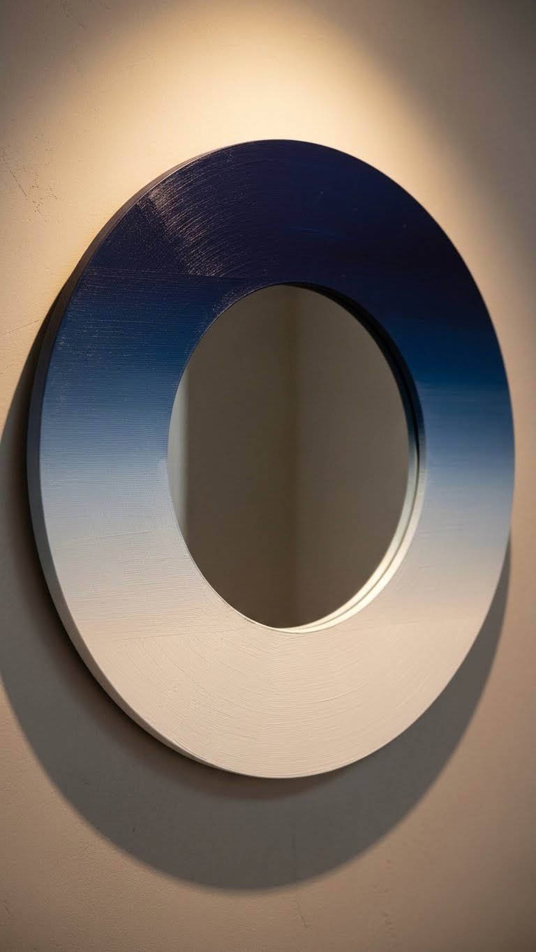 Grab a plain wood-framed mirror. Sketch your gradient lightly in pencil. Use two to three paint colors and blend with a damp brush or dry-brush technique. Seal with clear coat for durability. Takes two to three hours with drying time. Paint cost: under $20.