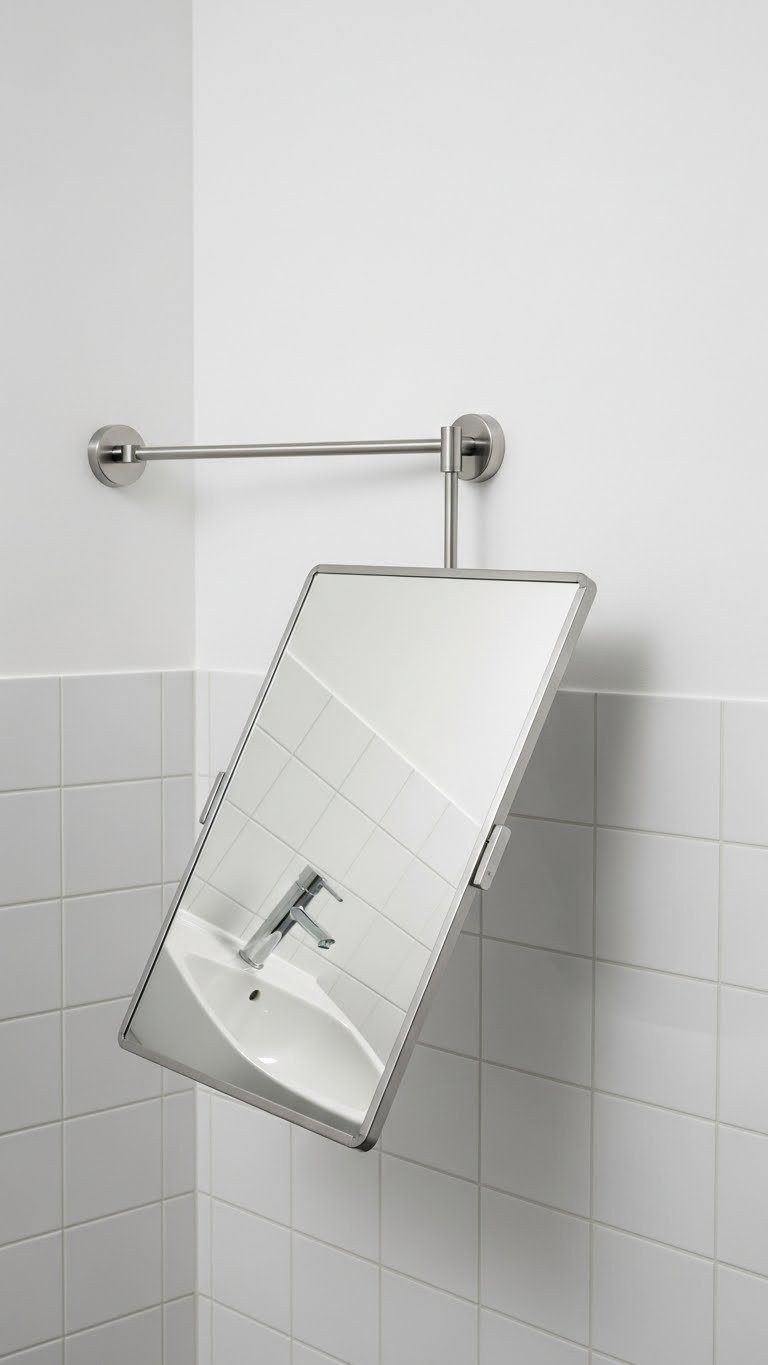 An adjustable mirror solves the classic problem of mirrors mounted for someone else’s height—brilliant for households with varying heights or renters who want flexibility.